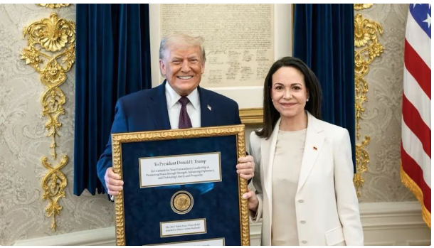 Durante su encuentro, María Corina Machado le regaló su medalla del Premio Nobel de la Paz a Donald Trump