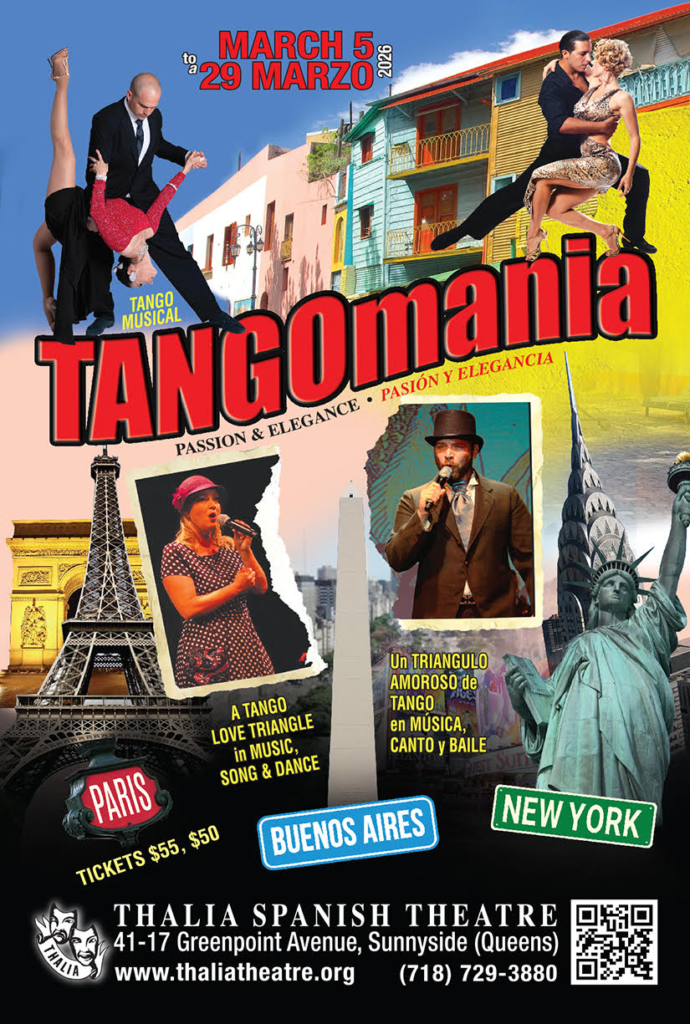 Colorido afiche de TANGOmania, la nueva producción del teatro Thalia en Queens. por Marcela Álvarez @tintanews El Thalia Spanish Theatre de Queens inicia su temporada 2026 con un musical de primer nivel, siguiendo la tradición de sus producciones tangueras que lo ha llevado a ganar numerosos premios, incluido el Latin Grammy. Del 5 al 29 de marzo, TANGOmania aterriza en la icónica sala de Sunnyside con un triángulo amoroso de tango, música, canto y…