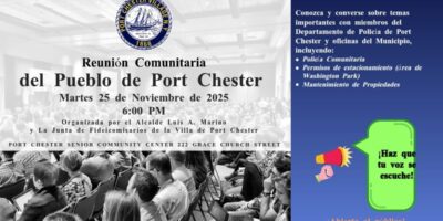 La villa de Port Chester llevó a cabo este martes una reunión comunitaria en el Senior Community Center en Port Chester, convocada por el alcalde Luis Marino y la Junta de Fideicomisarios de la Villa. El encuentro, abierto a la comunidad, reunió a residentes interesados en conocer y dialogar sobre temas que impactan directamente la calidad de vida en la comunidad. Palabras del alcalde hispano Luis Mariño. Durante el evento,…