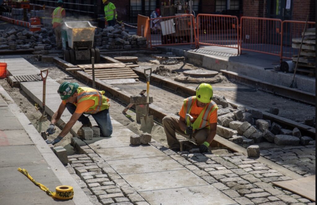 DDC’s historic preservation team held numerous outreach sessions with the local community while the project was being designed, and community members expressed strongly that they would prefer for old cobblestones to remain in their original locations. As a result, cobblestones that were removed during work were taken off-site for storage and then returned to the original block where they were found.
