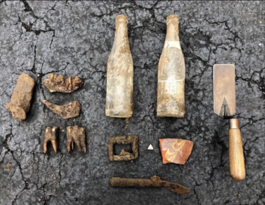 The city worked closely with historic preservationists during the planning and the construction of the project and approximately 2,800 artifacts were found during construction, some as old as the late-1600s but most dating from the mid-1800s to the mid-1900s. The majority of the collection comprises various types of domestic, utilitarian, and architectural ceramics, including objects made of earthenware, stoneware, and porcelain. Artifacts made of glass, metal, wood, stone, and leather, along with faunal remains like animal bones, teeth, and shell make up the remainder. Two of the most significant artifacts found were a copper button from the 1860s-1900s with the New York State Excelsior symbol and a clay smoking pipe from the 1820s-1860s stamped with a Liberty Eagle motif. The city is working to find a home to display the items for the public.