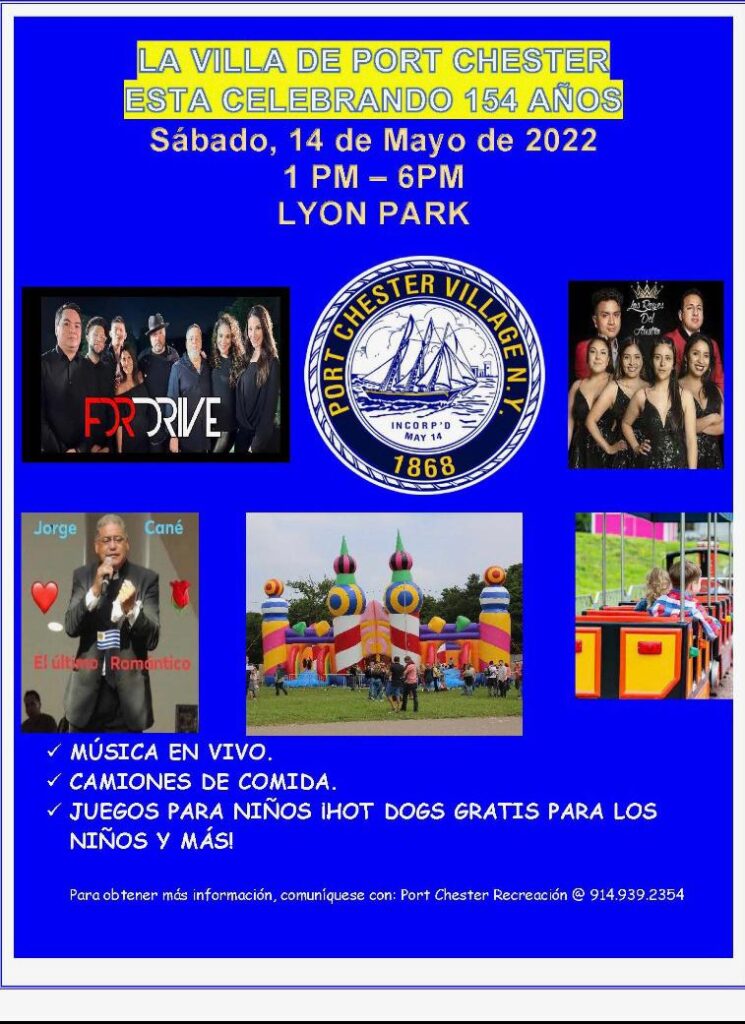 Port Chester se prepara para celebrar a lo grande su aniversario número 154, por lo que ha preparado un gran evento el día 14 de mayo en el Lyon Park a partir de la 1:00 P.M. El evento reúne un sinnúmero de actividades, música en vivo, comida, juegos para niños y Hot-Dogs gratis para los menores. Estarán presente el uruguayo Jorge Cané, la banda For Drive y la agrupación los…