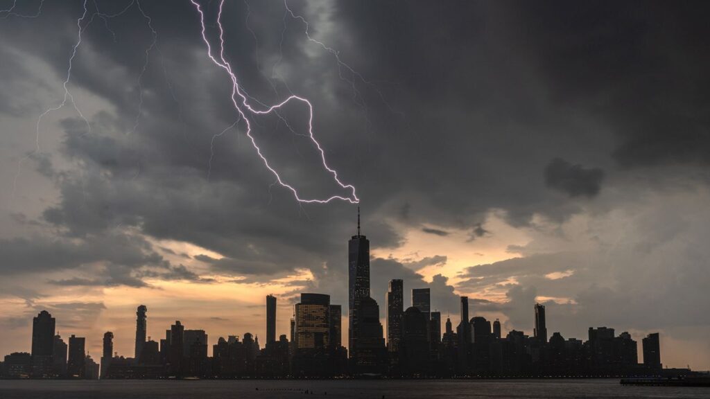 Este lunes, Nueva York despertó con el estruendo de fuertes truenos a medida que un frente cálido avanzaba y traía una línea de tormentas eléctricas que cruzaron el área de oeste a este. Las tormentas eléctricas generaron una mañana con lluvias y relámpagos en la Ciudad de Nueva York y otras zonas. Según los informes, un rayo golpeó el One World Trade Center, pero fueron los truenos de las 6:00 a….