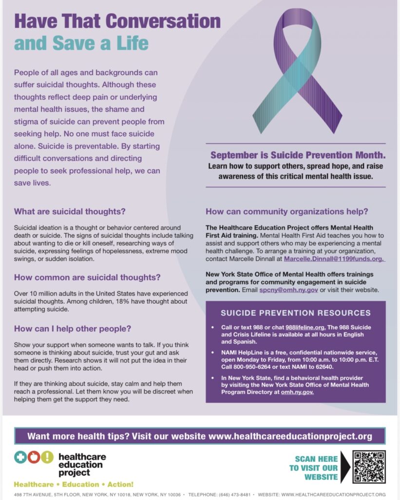 Durante el Mes de la Prevención del Suicidio, la organización Healthcare Education Project hace un llamado a la comunidad para generar conciencia sobre la importancia de la salud mental y fomentar conversaciones abiertas que pueden salvar vidas.